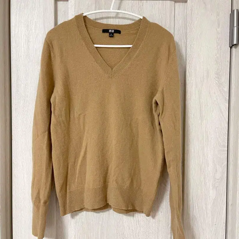 유니클로 캐시미어 베이지 V넥 M 사이즈