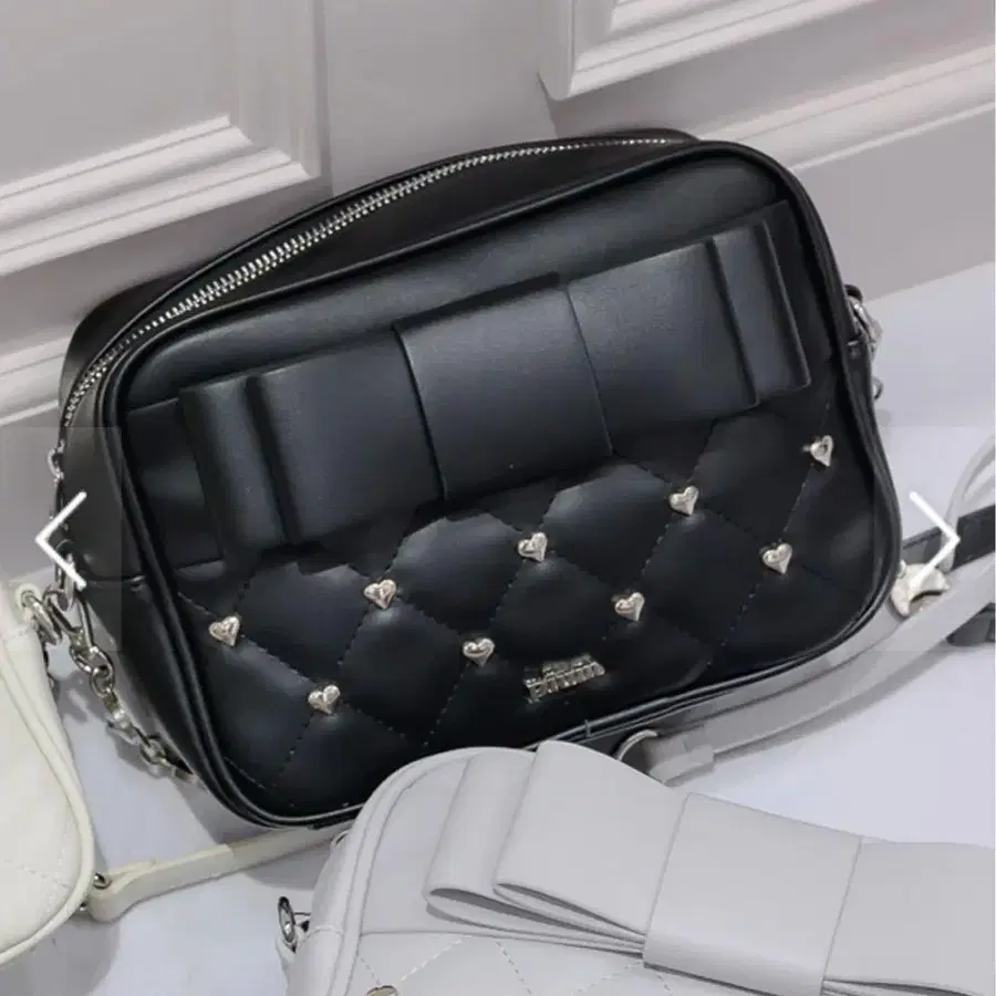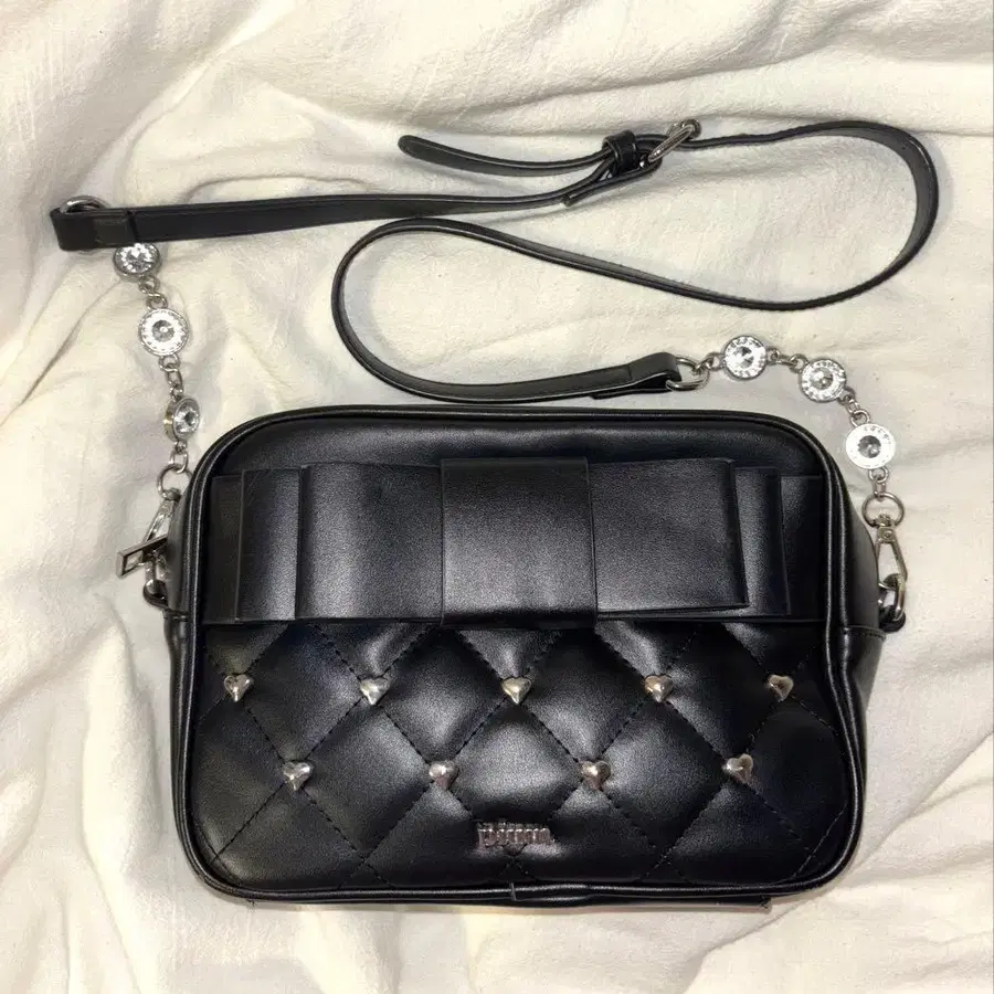 pium 하트 리본 퀼팅 숄더백