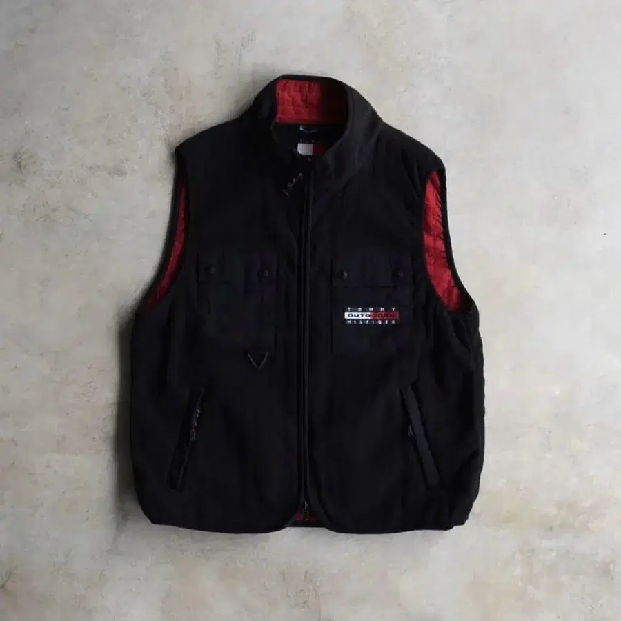 표면은 플리스 원단, 뒷면은 나일론 원단으로 착용감이 좋은 플리스 베스트입니다.