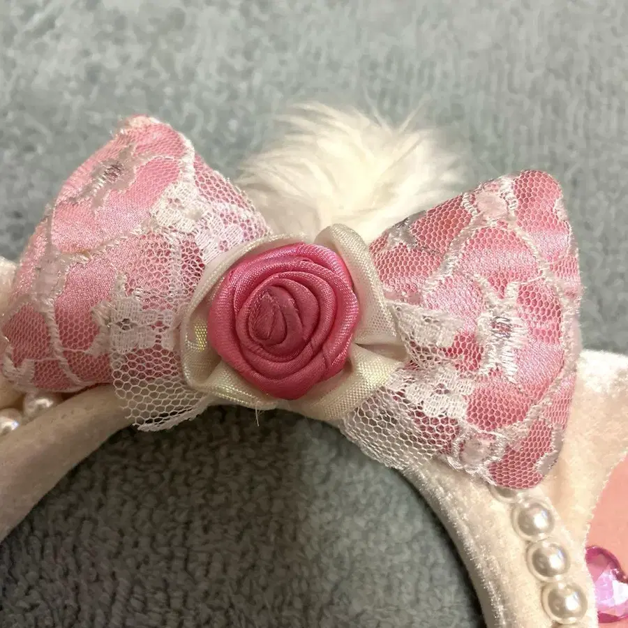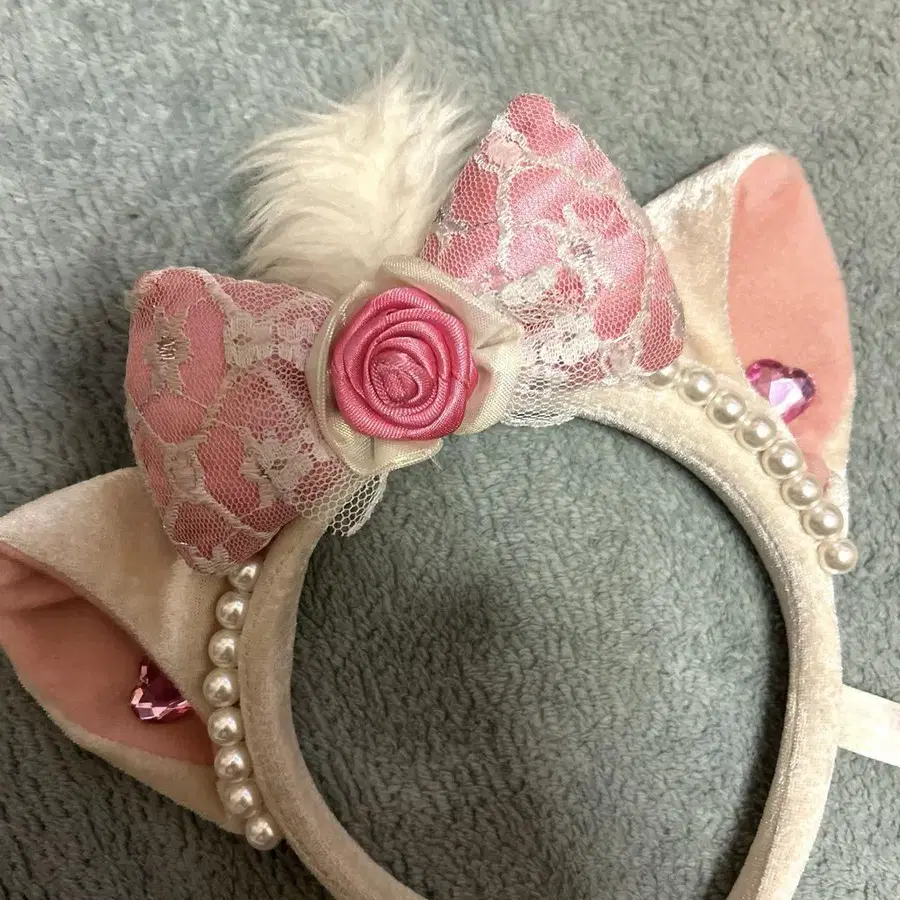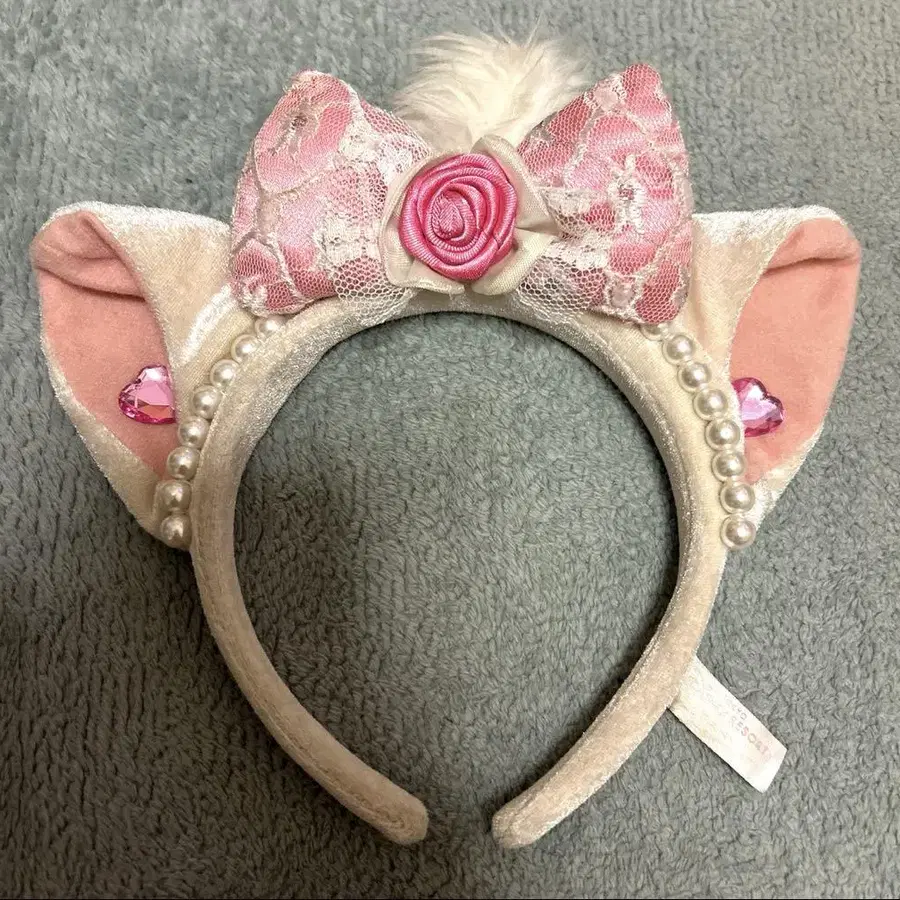 마리 고양이 귀 머리띠 디즈니 레이스 리본