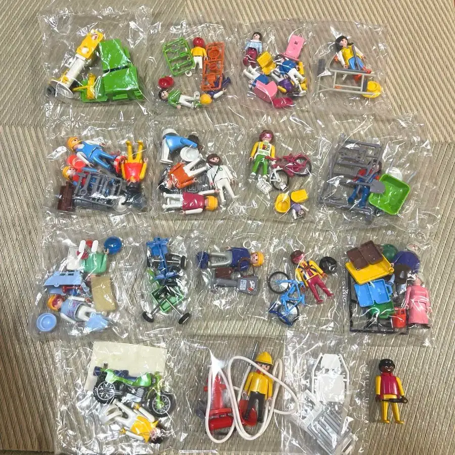 ⚠️ 구매를 고려하시는 분께. 가격 인하를 원하시는 분은 희망 가격을 제시해 주세요. 금액 제시가 없으면 단순 문의로 판단하여 회신하지 않습니다. 독일제 완구 playmobil 플레이모빌 묶음 판매 플레이모빌 초기 1974년산과 1987년산 완구들입니다. 대부분 미개봉품입니다. (일부 봉지에 들어있지 않은 것도 있습니다) 출시 당시의 미개봉품은 매우 희귀한 것이라고 생각합니다. ※ 바이크 앞쪽 페인트가 새고 있습니다. 묶음으로 구매해 주시는 분을 희망합니다. 질문 등 있으시면 편하게 해 주세요. 자택 보관임을 이해하신 후, 검토해 주세요. 인형 피규어 바이크 자전거 할아버지 할머니 어린이 엄마 아기 간호사 의사 소방관 개 소꿉놀이 모래놀이 공사 쓰레기통 신호등 레트로 빈티지 게오브라