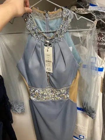 • 라이트 블루 비즈 장식 타이트 드레스