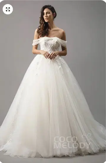 레이스 소재의 오프숄더 웨딩 드레스, 핏앤플레어 스타일로 아름다운 실루엣을 연출합니다. - 색상: 화이트 - 디자인: 오프숄더, 긴팔 - 소재: 레이스 - 스타일: 핏앤플레어 - 장식: 자수 포함 - 트레인: 김 - 허리 66, 힙 99 방문해 주셔서 감사합니다. 구매 후 1회 시착만 했으며, 사이즈가 맞지 않아 판매합니다.