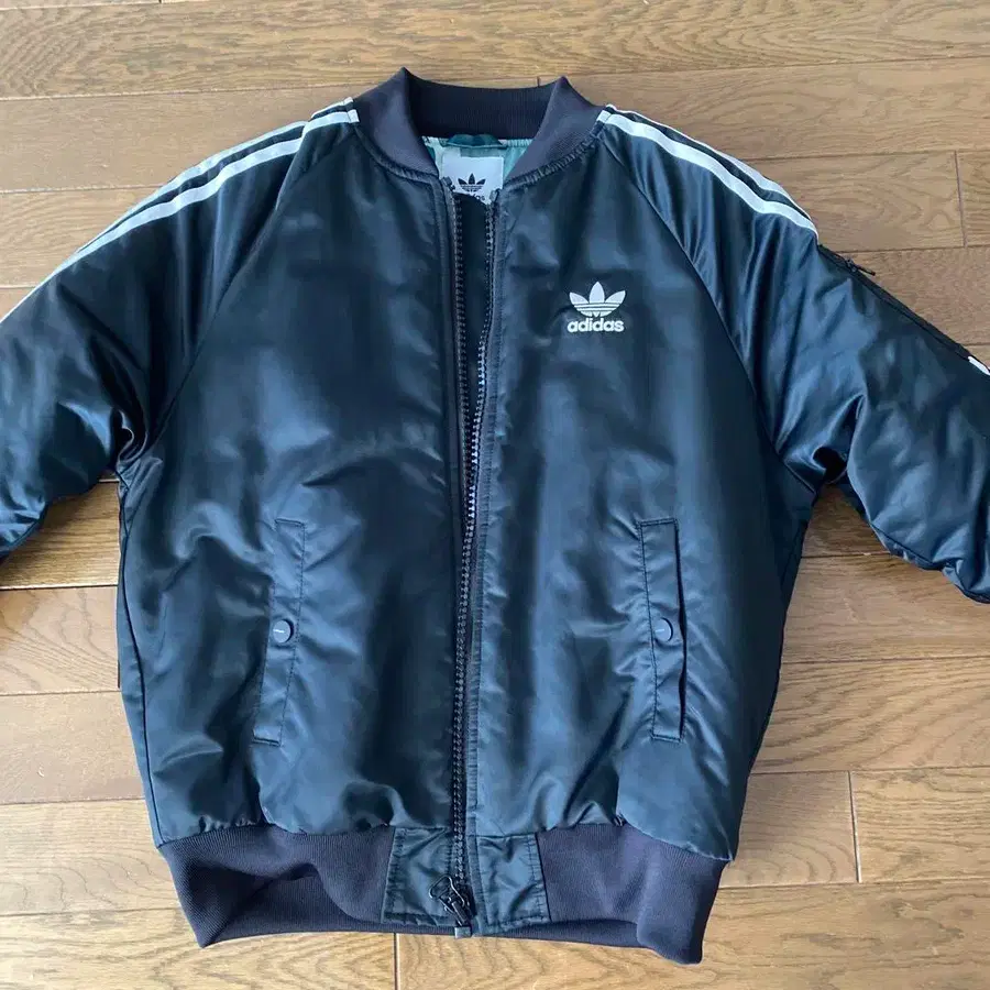 자동 번역되었어요. 원문보기adidas의 블랙 MA-1 자켓, 뒷면에 유니크한 숫자 디자인이 특징.