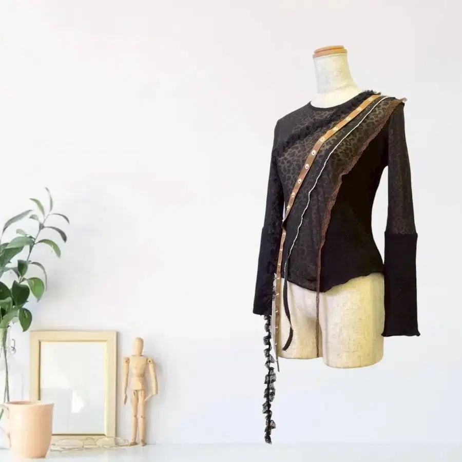 zB345 [프리 사이즈] 에스테르 무브 레오파드 프린트 시어 탑