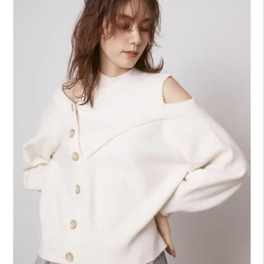 SNIDEL 오픈 숄더 버튼 니트 풀오버