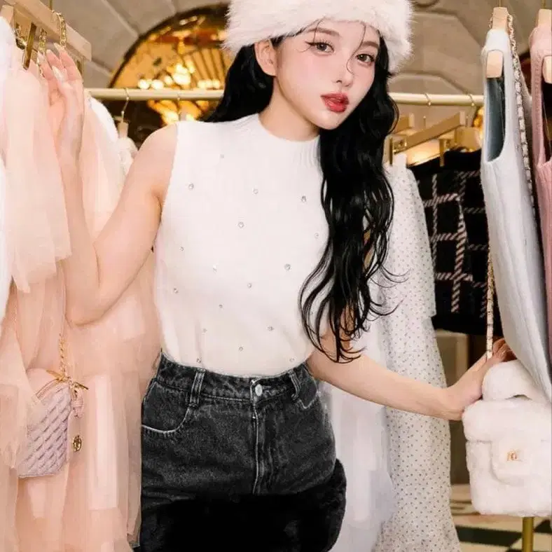 다리치 비쥬 슬리브리스 니트탑