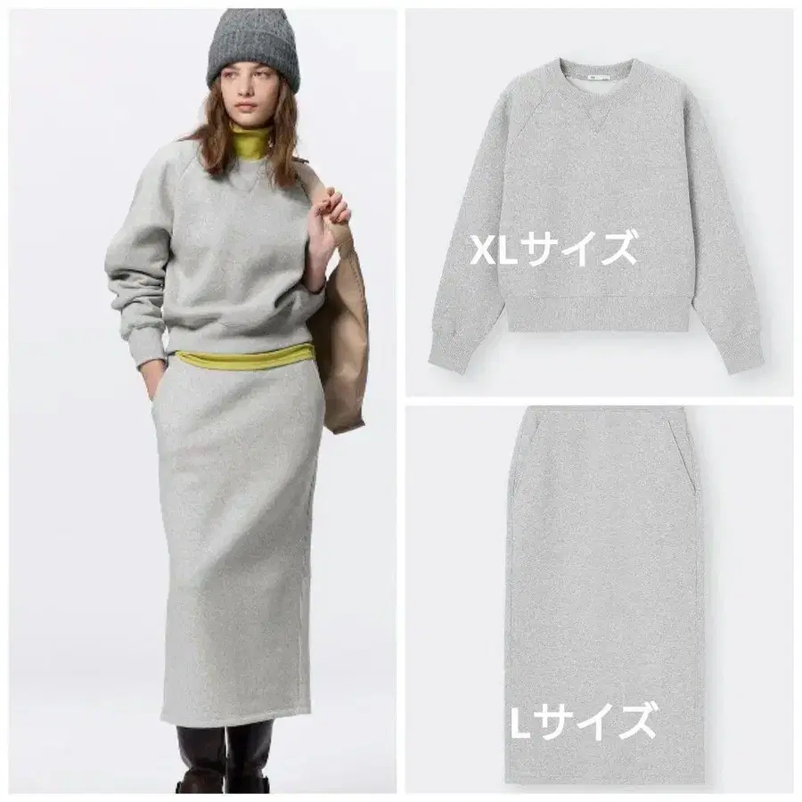 헤비 웨이트 맨투맨 내로우 스커트 맨투맨 풀오버 셋업