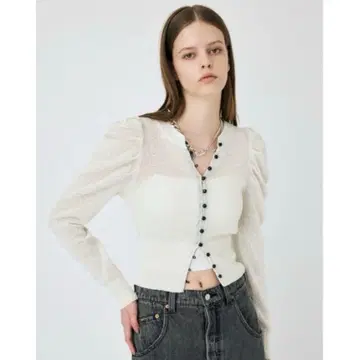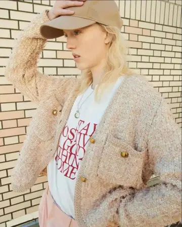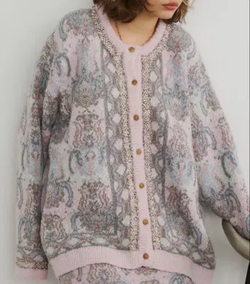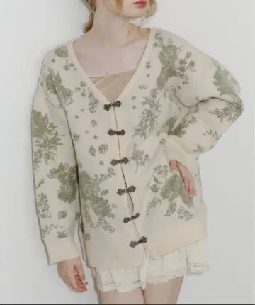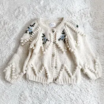 TRUBE 자수 니트 가디건 베이지 정원 자수 톡톡 자수 입체 자수