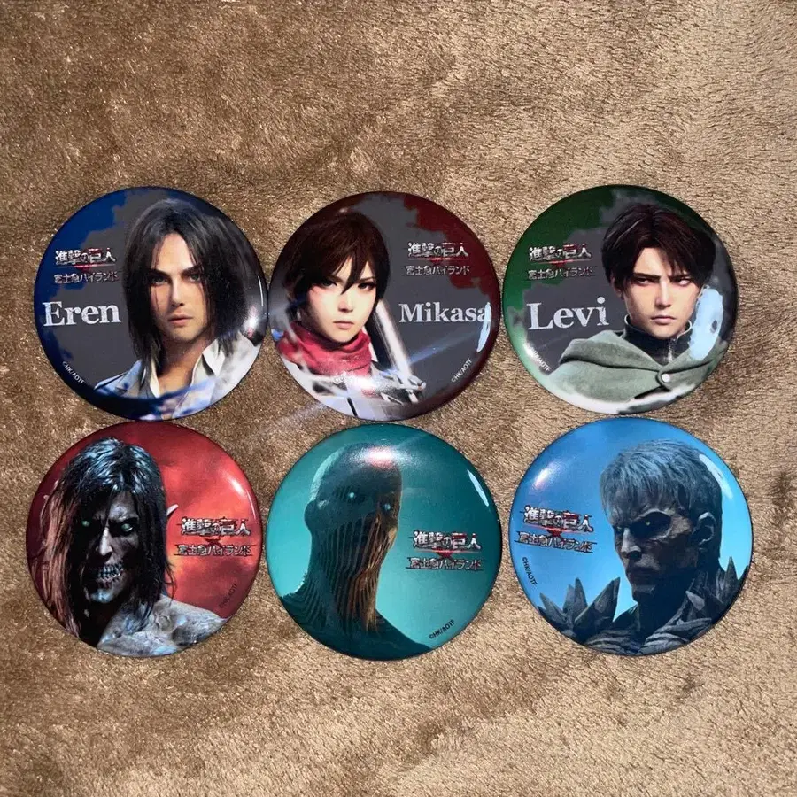 후지큐 하이랜드 진격의 거인 THE RIDE -레벨리오의 결전- 블라인드 캔뱃지 엘렌, 엘렌 거인, 미카사 갑옷의 거인, 망치의 거인, 리바이 총 6종 컴플리트 낱개 판매, 네고 불가 개인 보관이므로 신경 쓰이는 분은 구매를 삼가해 주십시오.