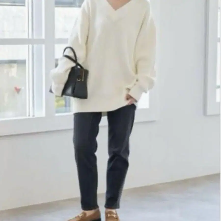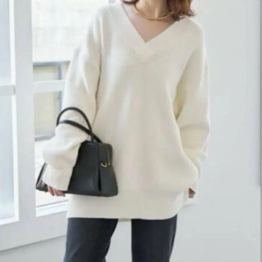스픽 앤 스팬 벌키 얀 아제 V넥 튜닉 니트 미사용 새상품