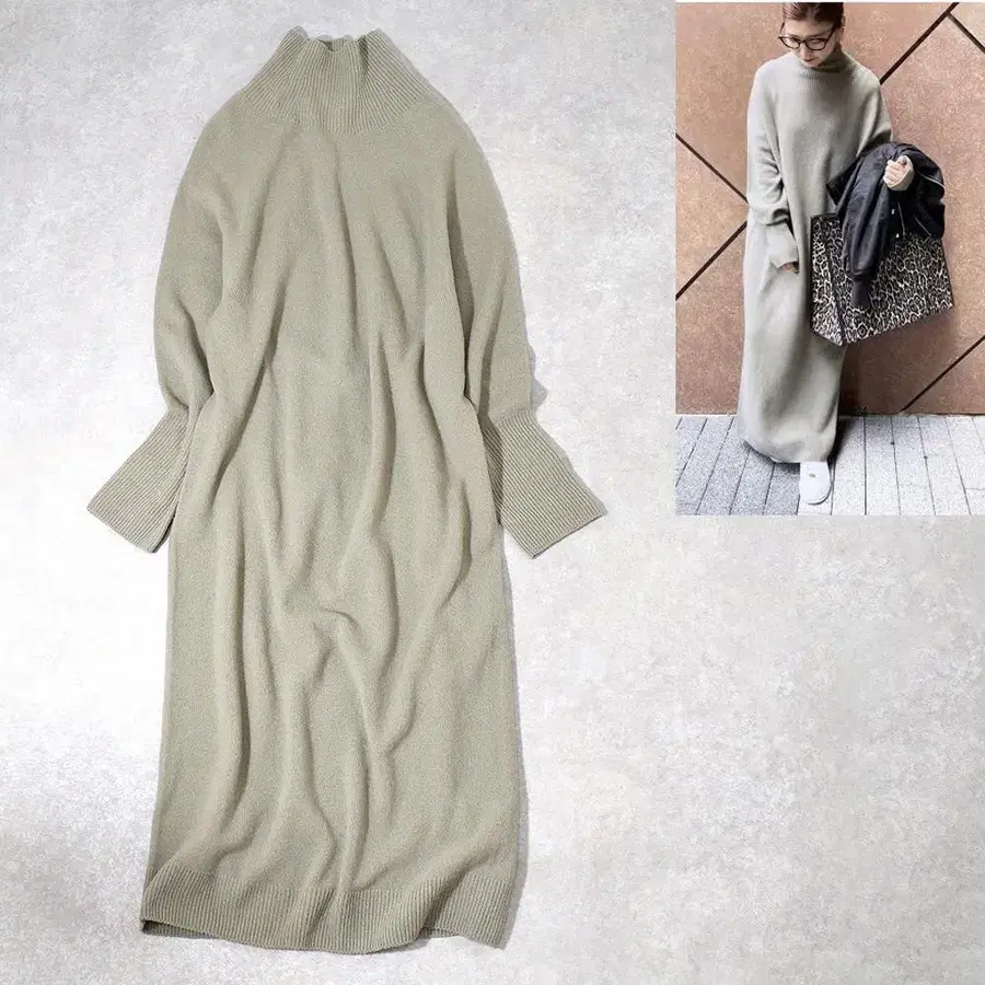 22AW 스픽앤스팬 Spick&Span 울 100% 터틀넥 니트 원피스 카키 롱 맥시 길이 홀 가먼트