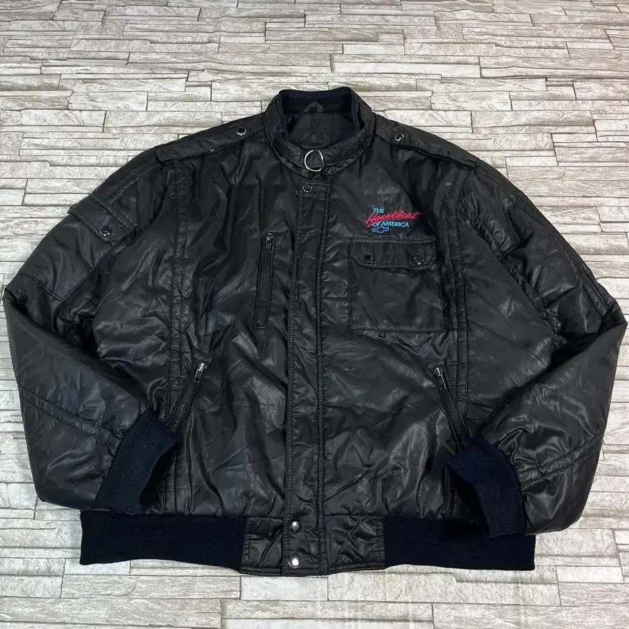 빈티지 쉐보레 나일론 블루종 충전솜 자수 로고 블랙 레어