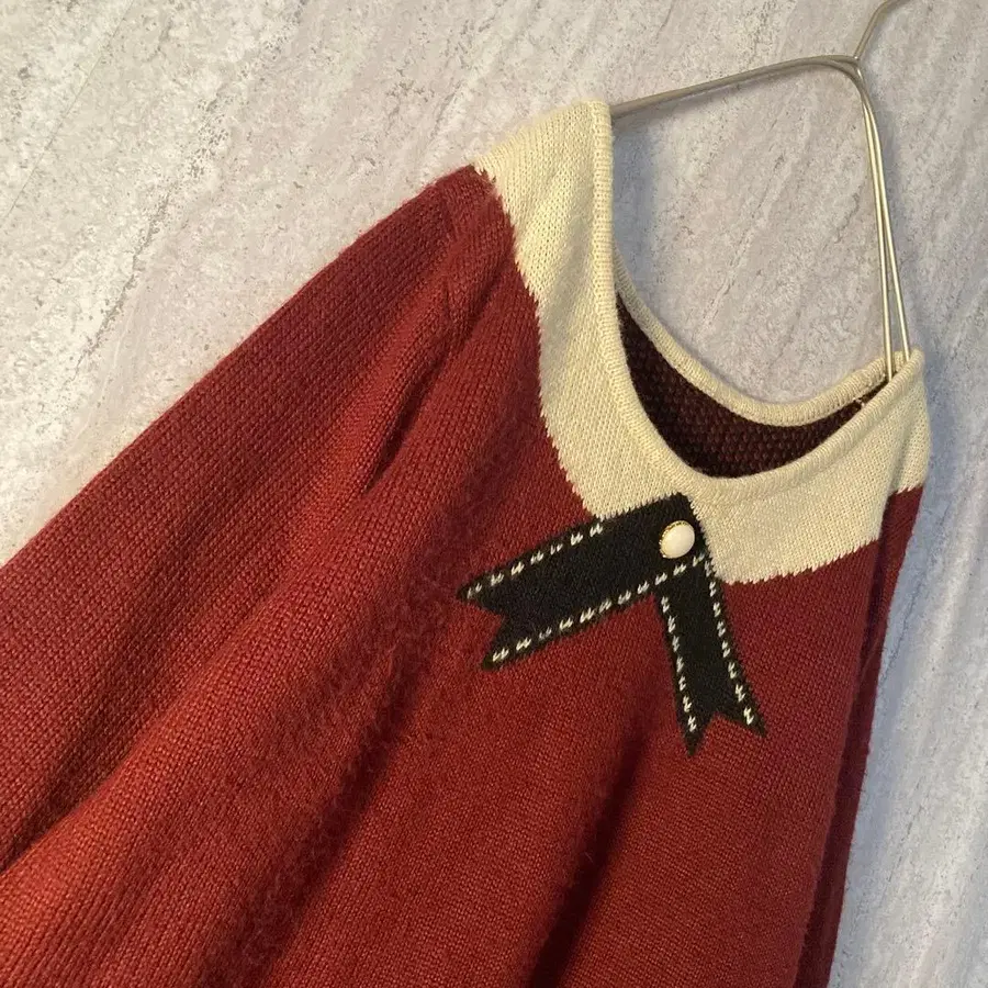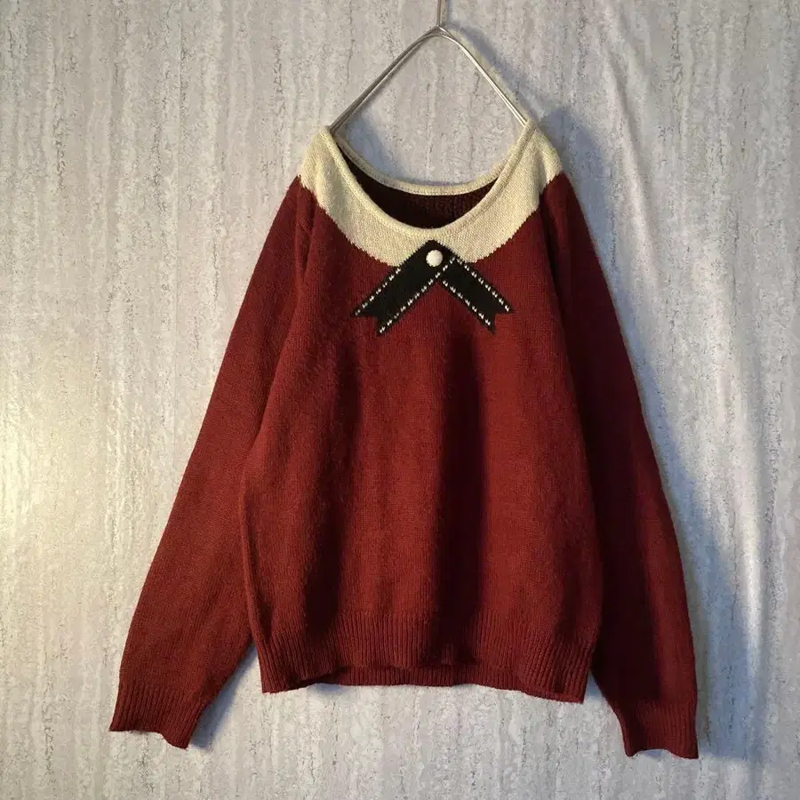 빈티지 니트 리본 펄 레트로 앤티크 버건디 와인