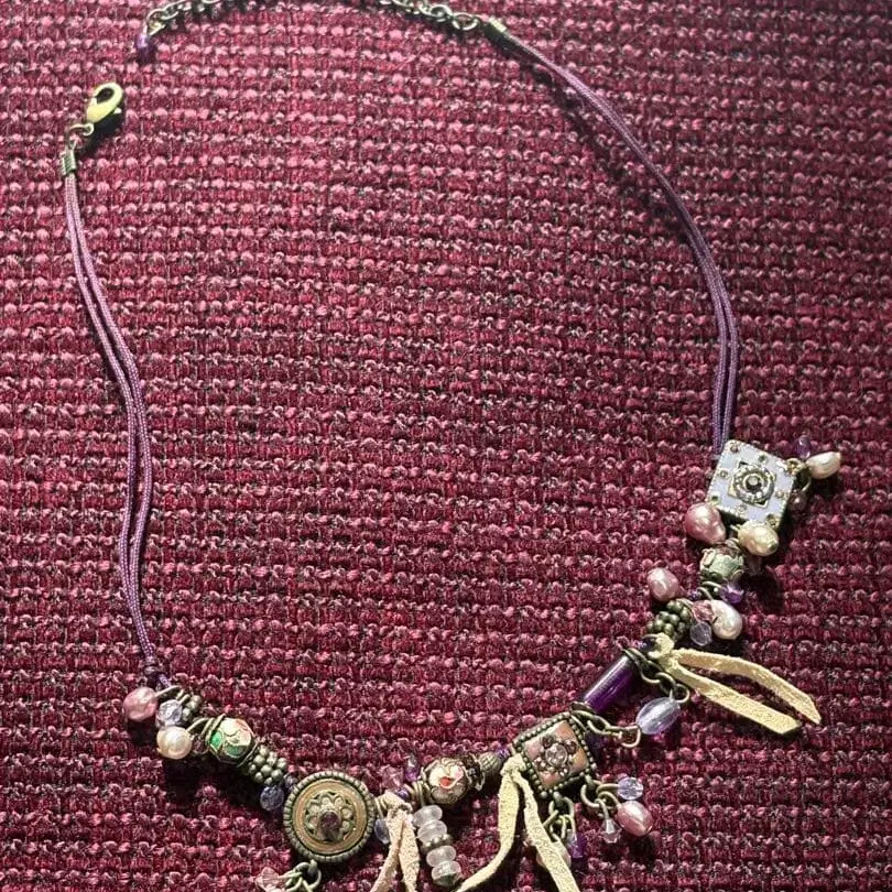 안나수이 퍼플 계열 비즈 장식 캐주얼 목걸이