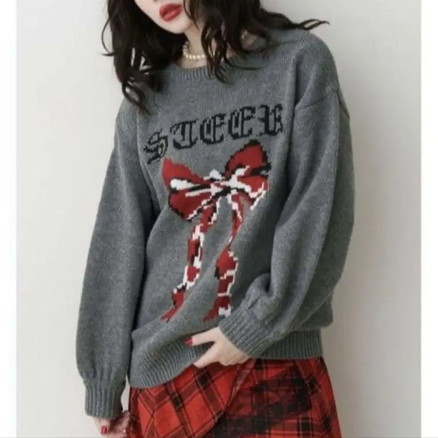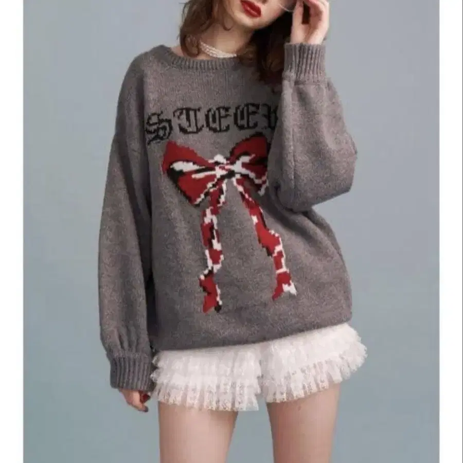 jouetie 리본 자카드 루즈 니트 그레이 M 쥬에티