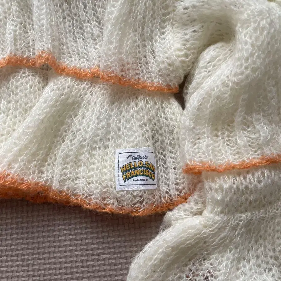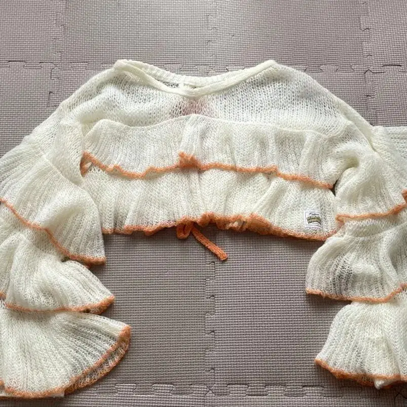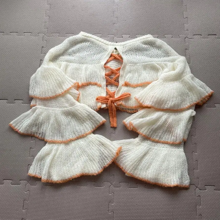 HELLO.SANFRANCISCO 시어 배색 프릴 레이스업 니트