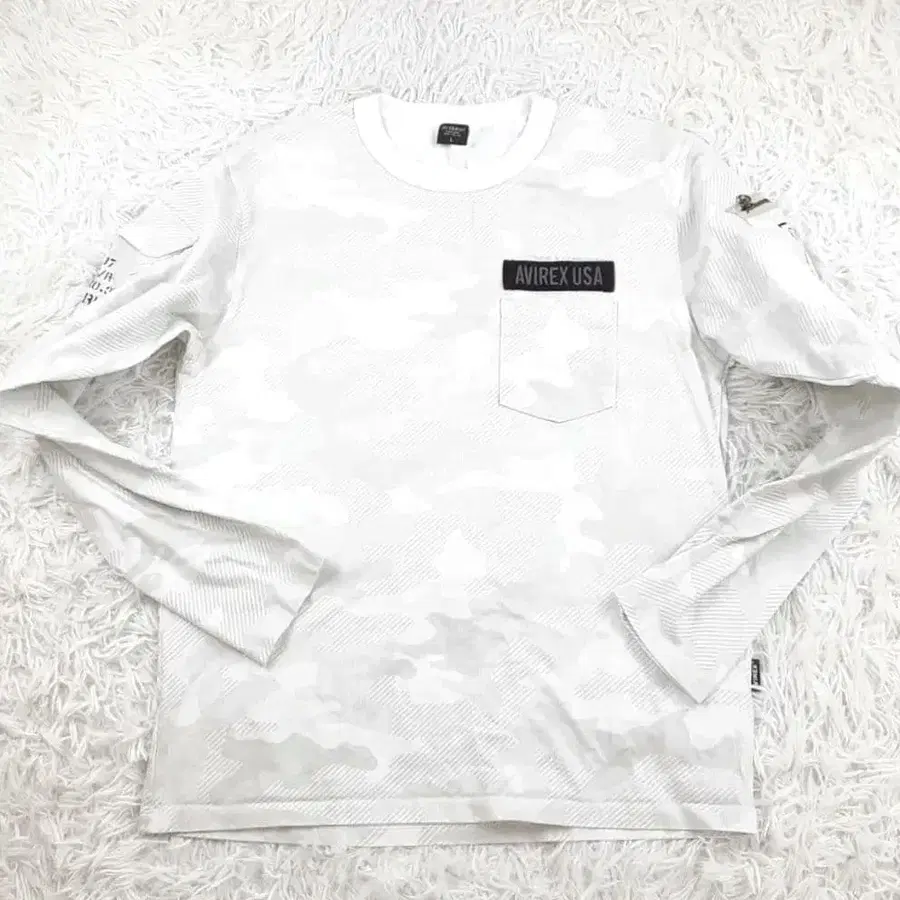 새상품급 ◎ AVIREX 아비렉스 긴팔T셔츠 롱T셔츠 롱티 화이트 계열 화이트 계열 카모 패턴 올 패턴 와펜