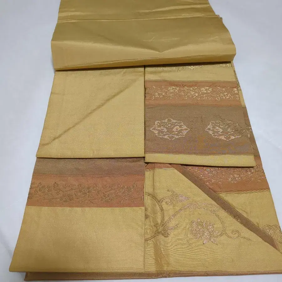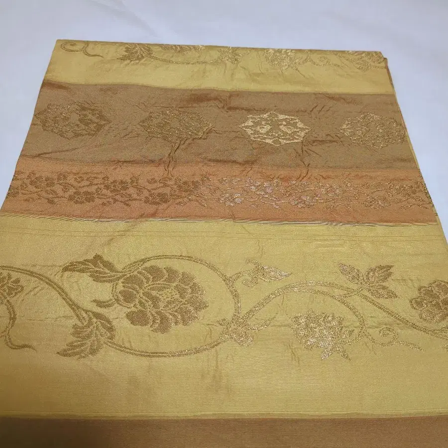 나고야 오비 짙은 베이지 계열 꽃+덩굴 패턴 꽃무늬