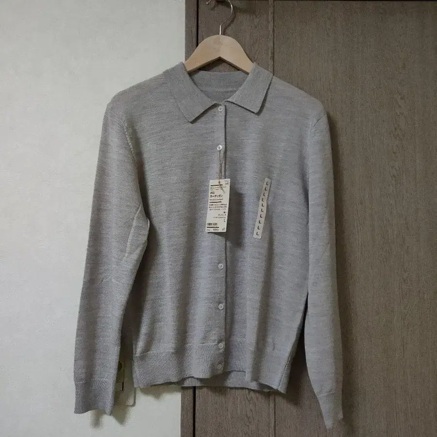 세탁 가능한 울 하이 게이지 폴로 가디건 L 오트밀
