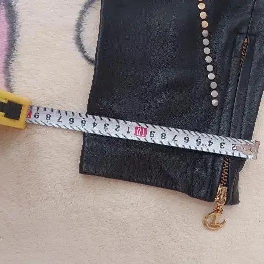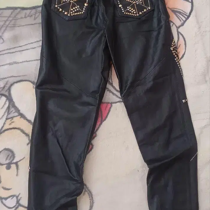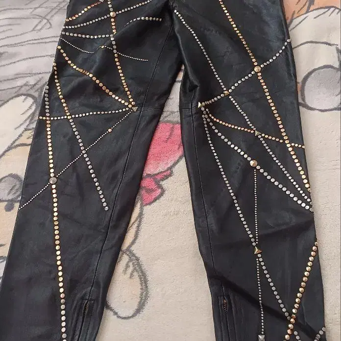 스터드 장식 블랙 가죽 팬츠 양가죽