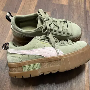 • PUM 그레이 그린 합성 피혁 스니커즈