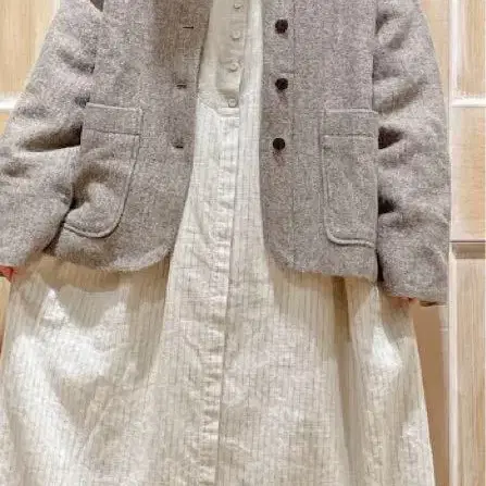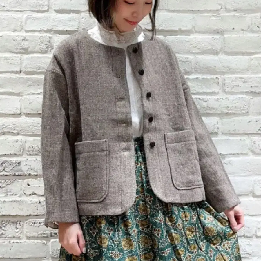 TSUHARU 헤링본 린넨울 노카라 숏코트