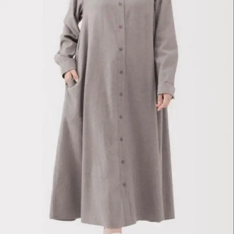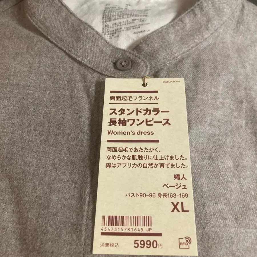 무인양품 양면 기모 플란넬 스탠드 카라 긴팔 원피스 베이지 XL