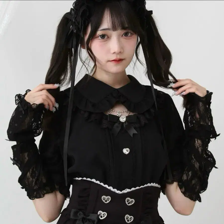 DearMyLove 비쥬 펄 하트 리본 레이스 암커버 블라우스