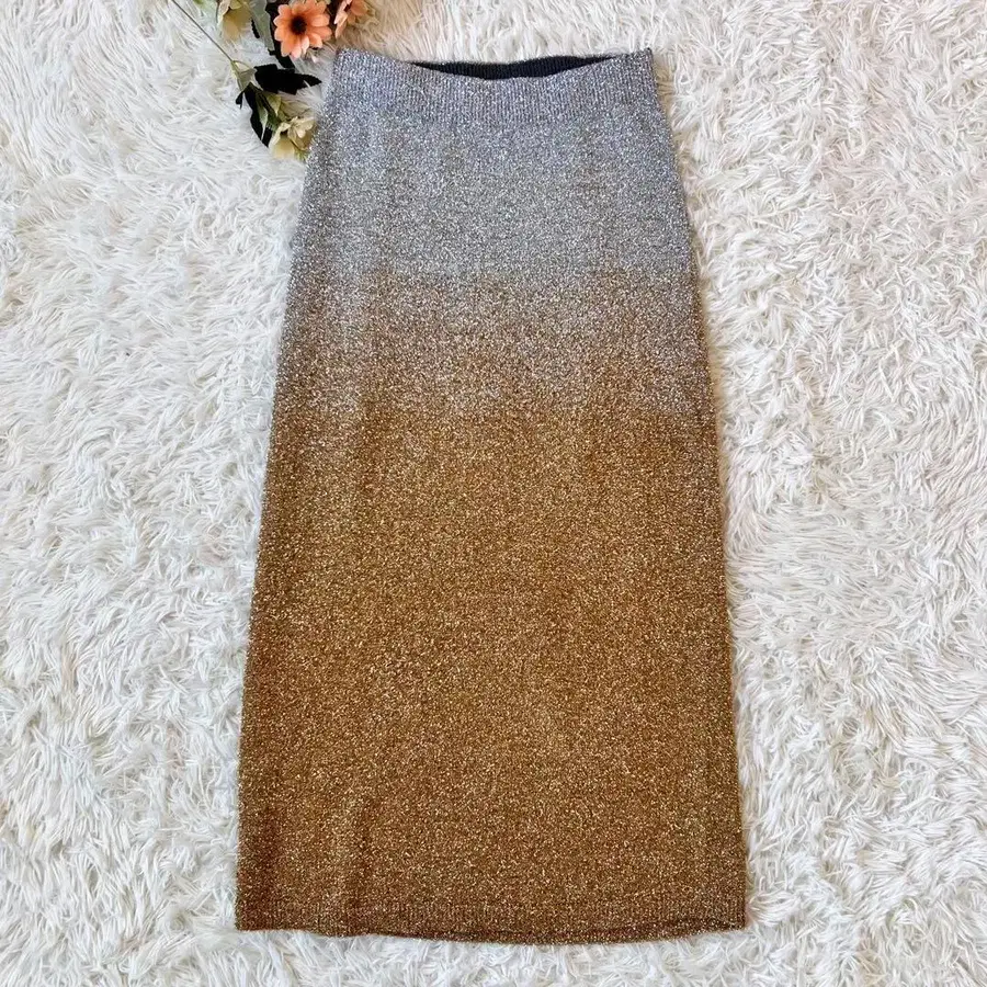 드리스반노튼 그라데이션 라메 타이트 롱 스커트