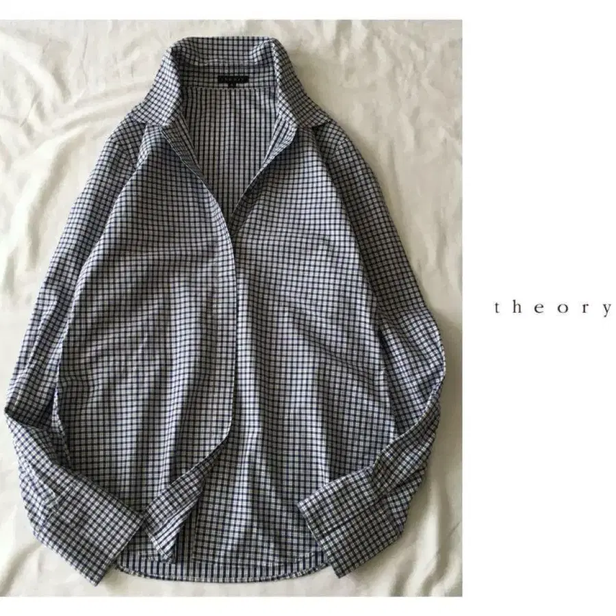 띠어리 [세탁 가능] 체크 코튼 화이트 x 네이비 컬러 블라우스 겉옷