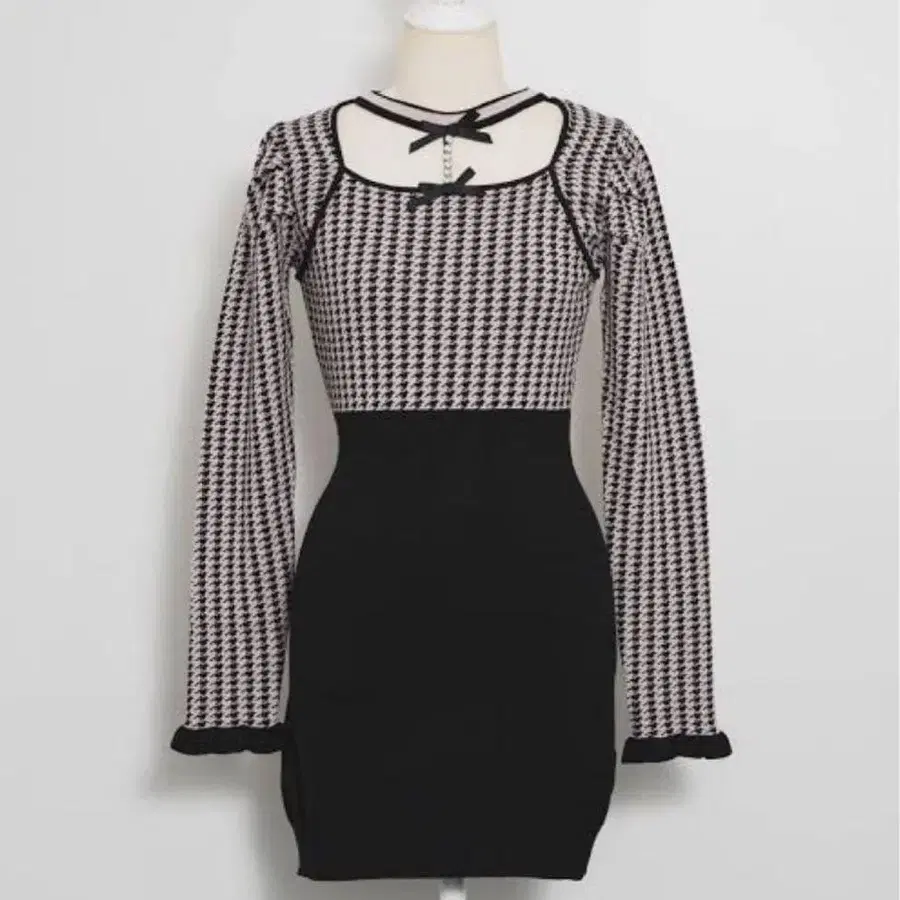 Pium 피움 비쥬 초커 니트 원피스 핑크 블랙
