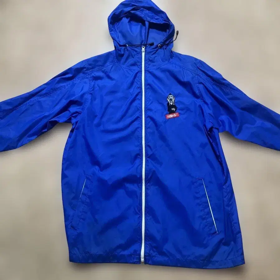 후드 부착 파란색 나일론 자켓, 자수 로고로 스타일리시합니다. - 색상: 파랑 - 디자인: 후드 부착, 지퍼식, 자수 로고 있음 - 브랜드: PUNK'S 방문해 주셔서 감사합니다.