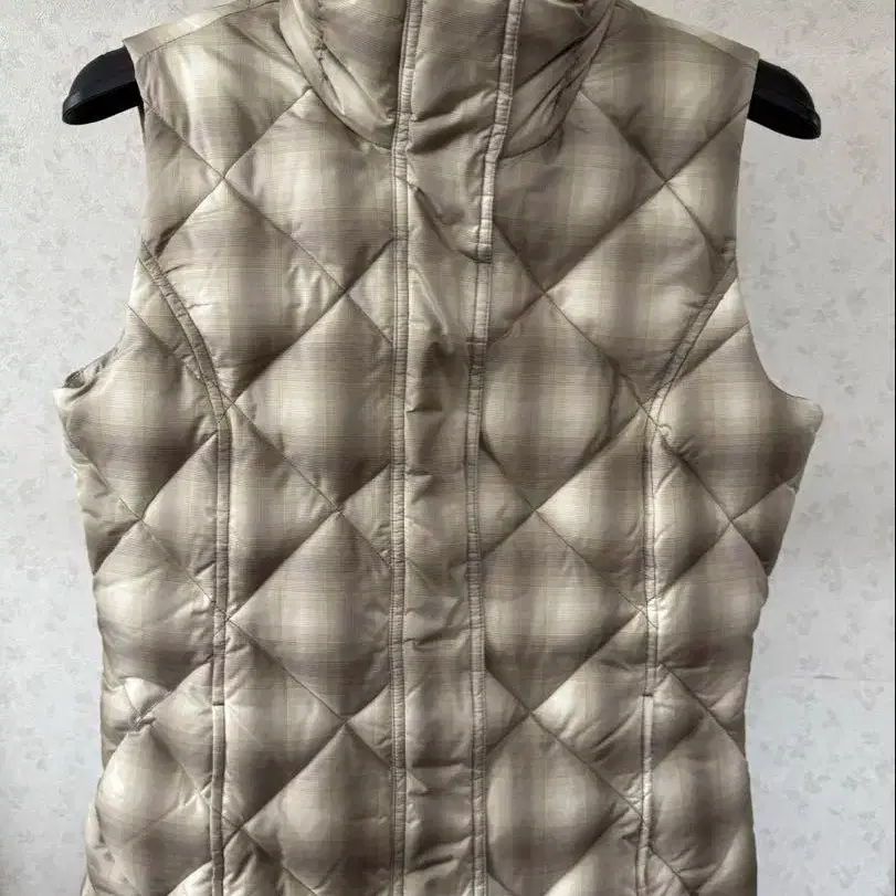 에디바우어 다운 베스트 퀼팅 베스트 베이지 계열 체크