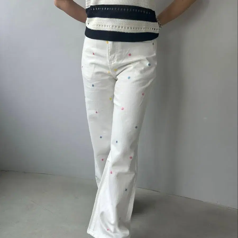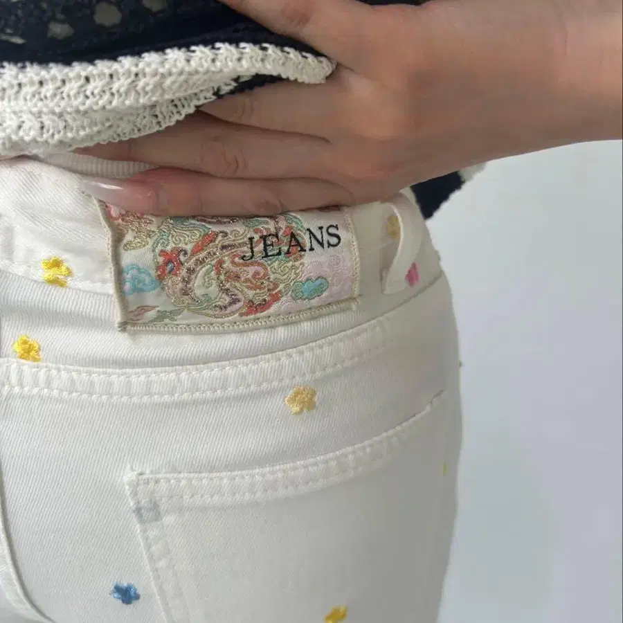 컬러풀한 작은 꽃 자수가 시선을 사로잡는, 어른 걸리시한 위트를 담은 데님 팬츠. 정성스럽게 장식된 입체적인 플라워 자수가, 심플해지기 쉬운 데님 스타일을 화려하게 돋보이게 하는 아이템입니다. 360도 어디에서 보아도 사랑스러움을 느낄 수 있는 자수 디테일은, 너무 달지 않은 어른의 여유와 품격을 풍기는 절묘한 마무리로. 걸리시한 모티브를 러프한 데님에 담아냄으로써, 달콤함과 캐주얼함의 균형이 잡힌 세련된 스타일이 완성됩니다. 실루엣은 다리 라인을 너무 드러내지 않는 여유로운 스트레이트. 체형을 가리지 않고 자연스럽게 라인을 보정하며, 캐주얼하면서도 깔끔한 인상을 줍니다. 부드럽고 통기성이 좋은 원단을 사용했기 때문에, 장시간 착용해도 피로하기 어렵고 릴랙스감 있는 착용감을 실현합니다. 색상은 스테디셀러인 블루와, 더욱 청량감 있는 화이트의 2가지 색상으로 전개. 둘 다 자수의 컬러풀함을 돋보이게 하며, 계절을 불문하고 스타일링의 악센트로 활용하기 좋습니다.