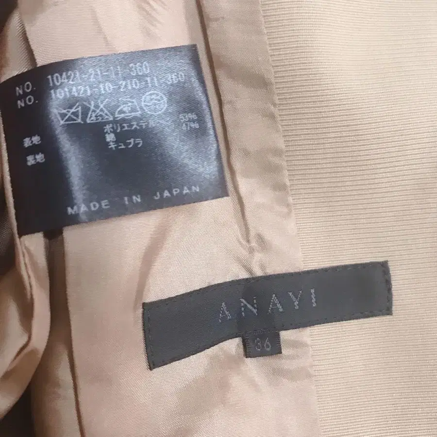 아나이 노카라 자켓 페이크 포켓 백 오픈 카멜 사이즈 36
