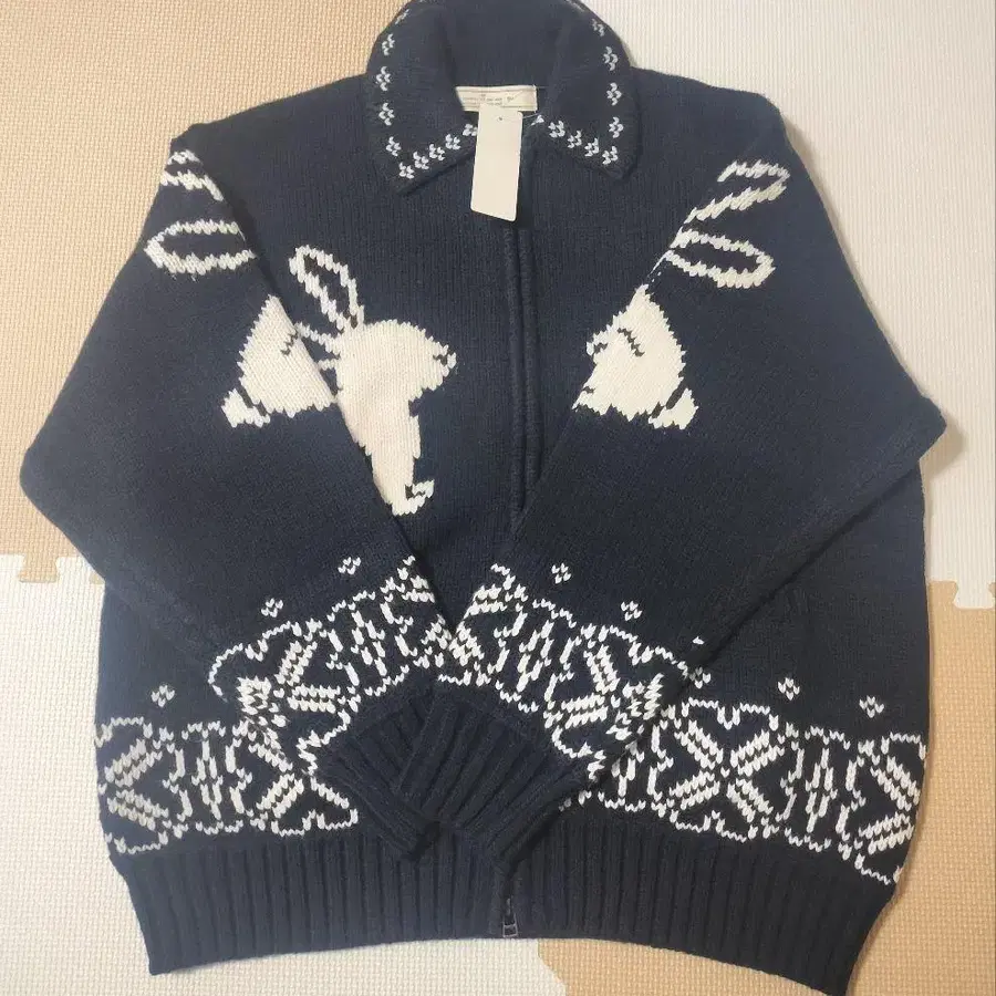 새상품 L 풀 집업 니트 자켓 byrokh 네이비
