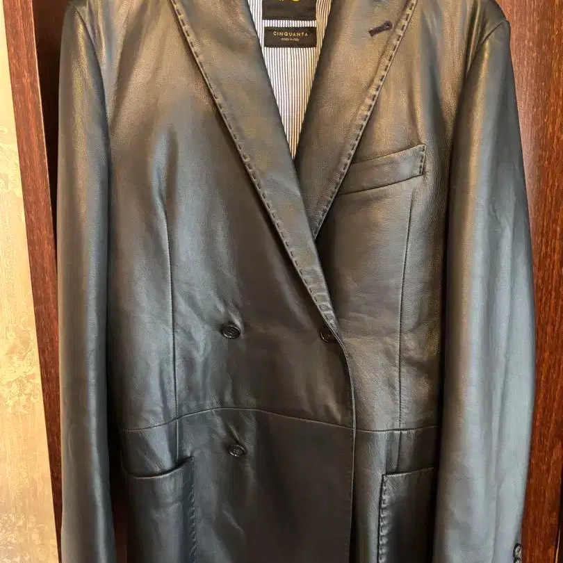 CINQUANTA 가죽 테일러드 자켓 블랙