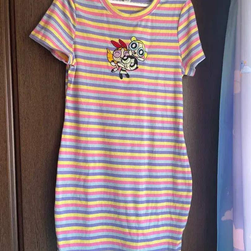 컬러풀한 스트라이프 패턴의 T셔츠 드레스 - 브랜드: CN (Cartoon Network) - 사이즈: OXL - 디자인: 스트라이프 패턴 - 캐릭터: 블라썸 (The Powerpuff Girls) 방문해 주셔서 감사합니다.