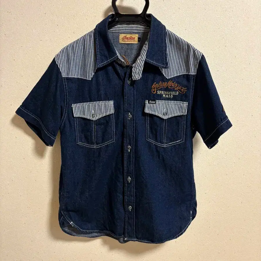 [ 레어 ] INDIAN MOTOCYCLE 자수 반팔 데님 웨스턴 셔츠
