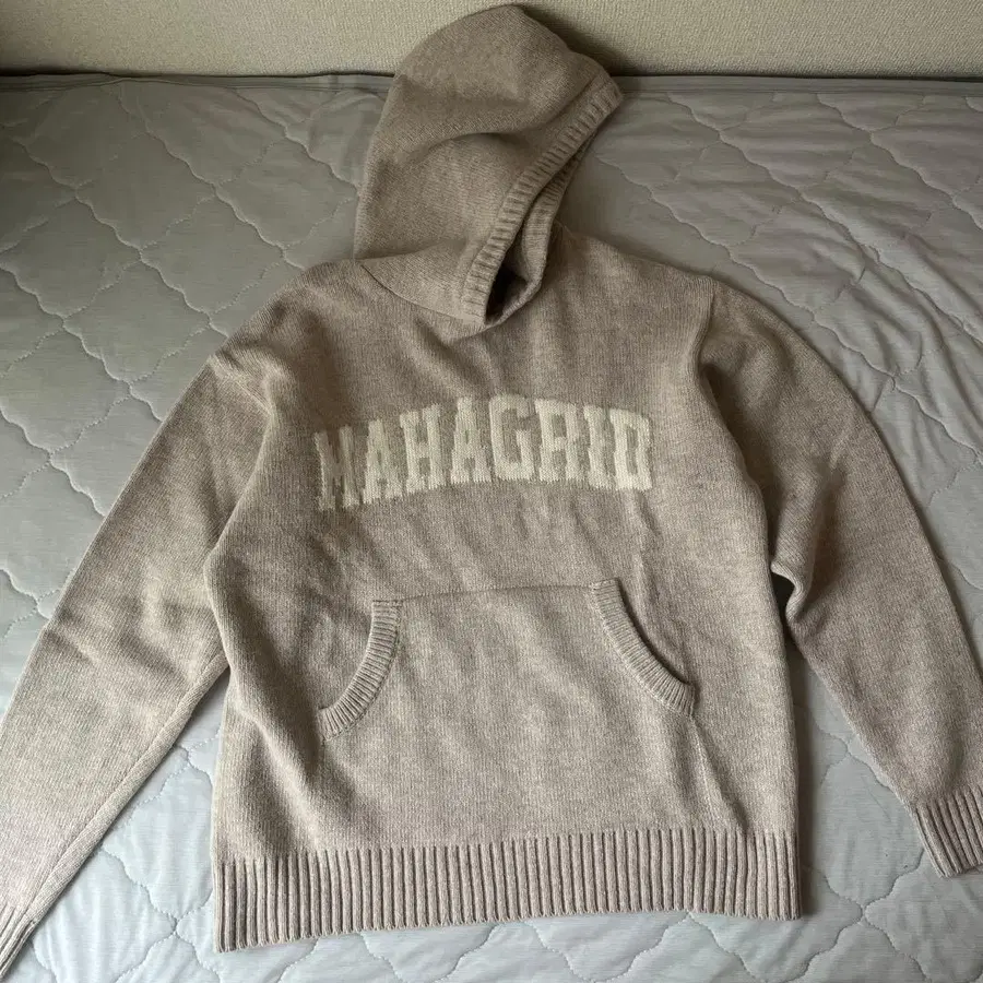 MAHAGHID 후드 부착 니트 소재 후드티 베이지