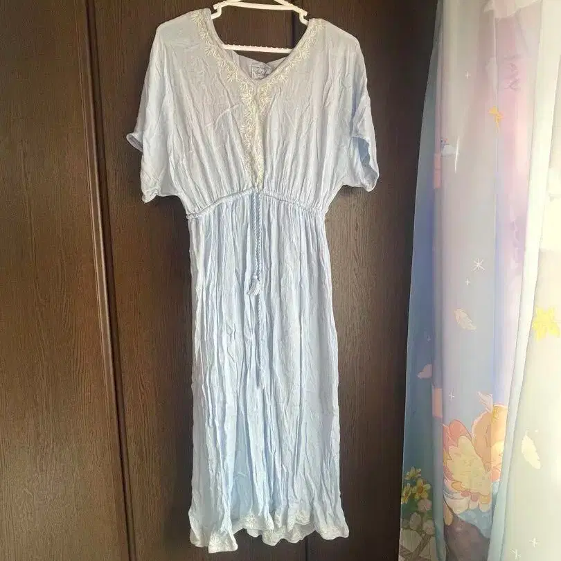 스카이블루 허리밴딩 롱 원피스, 꽃무늬 자수 포함. - 색상: 스카이블루 - 자수: 앞면에 꽃무늬 자수 - 소매 스타일: 반팔 - 디자인: 허리밴딩 롱 원피스 방문해 주셔서 감사합니다.
