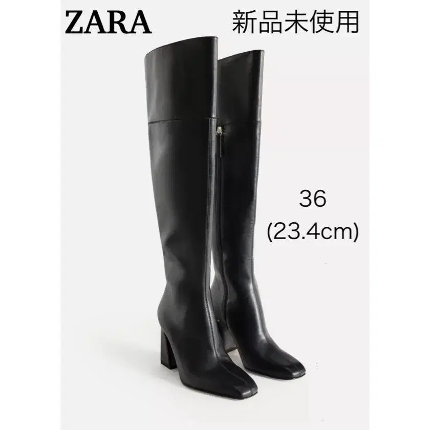 올해 1월 NY ZARA에서 구매했습니다. 미사용 새상품입니다. - 브랜드: ZARA - 사이즈: 36 (23.4cm) - 높이: 약 56cm, 힐 약 9cm - 색상: 블랙 - 힐 모양: 블록힐