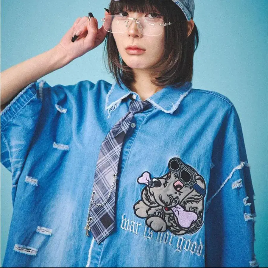 [ GALFY ] 갈피 병에 물든 반전 데님 셔츠 대형견 XL