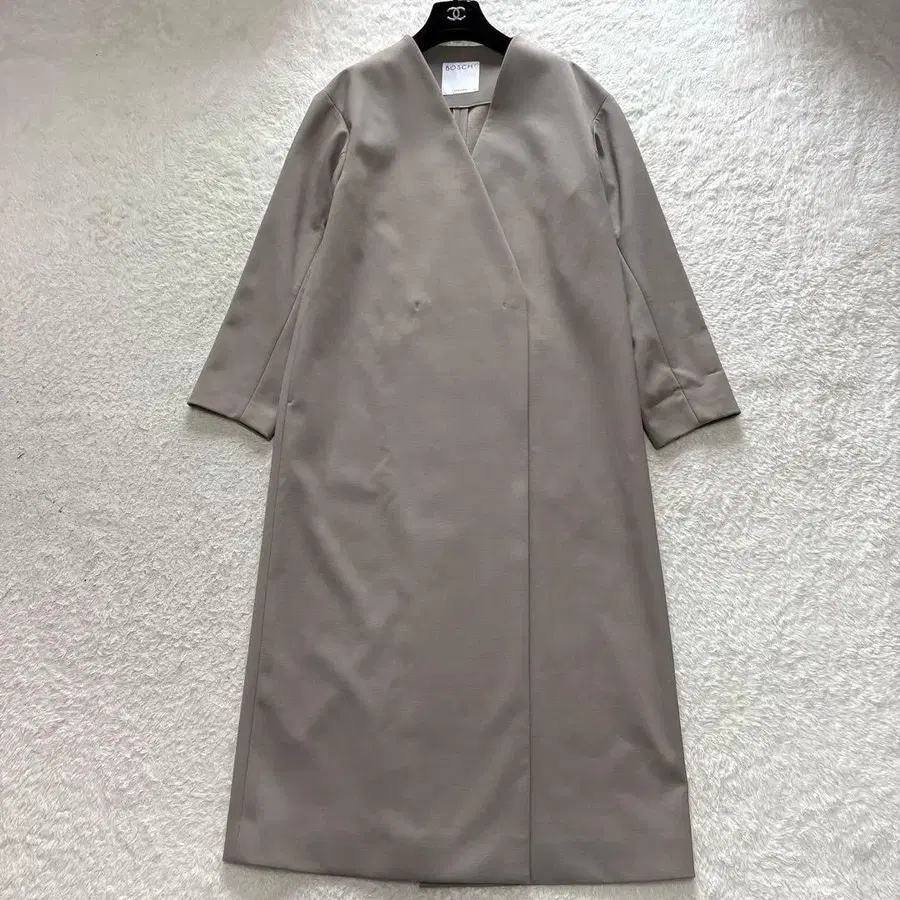 직물 x 저리의 본딩 소재로 완성한 노카라 코트.