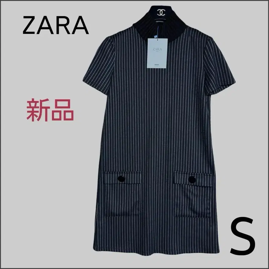 새상품 [ ZARA ] 터틀 반팔 원피스 핀스트라이프 S 블랙