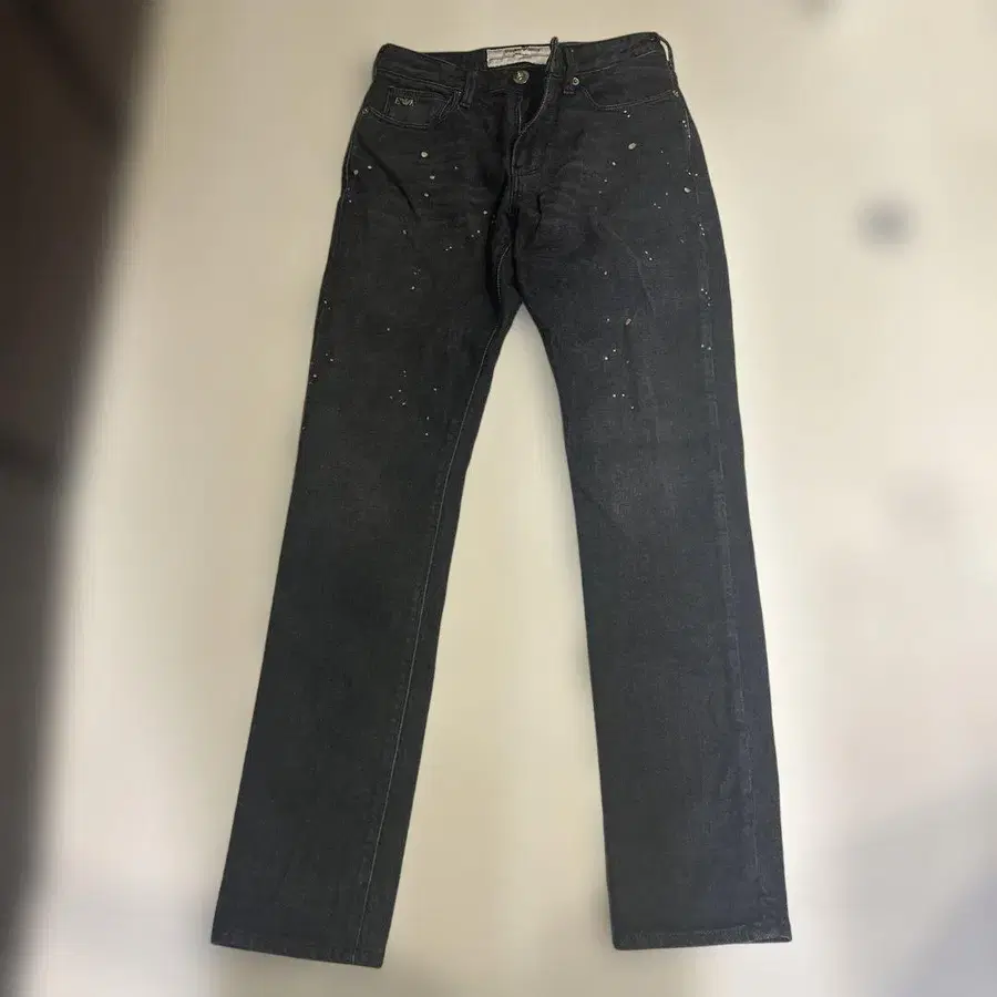 방문해 주셔서 감사합니다. EMPORIO ARMANI의 블랙 데님 팬츠입니다. 금 로고가 돋보이는 고급스러운 모델입니다. 전체에 뿌려진 페인트 가공이 악센트가 되어 있습니다. ● 사이즈 허리: 약 77cm 인심: 약 76cm 밑단 폭: 약 16cm ※ 평평하게 놓았을 때 치수 측정으로, 약간의 오차는 양해 부탁드립니다. ● 상태 눈에 띄는 상처나 찢김 등은 없습니다. 원래부터의 페인트 가공 디자인에 의한 흰색 반점이 있습니다. ● 색상 블랙 계열 실루엣도 예쁘고, 폭넓은 코디에 사용할 수 있습니다. 궁금한 점이 있다면 부담 없이 댓글 남겨주세요!