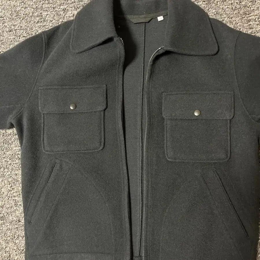 지퍼 블랙 자켓, L 사이즈, 플랩 포켓 부착. - 색상: 블랙 - 사이즈: L - 디자인: 지퍼 부착, 플랩 포켓 2개 - 소재: 울 혼방 (추정) 방문해 주셔서 감사합니다.