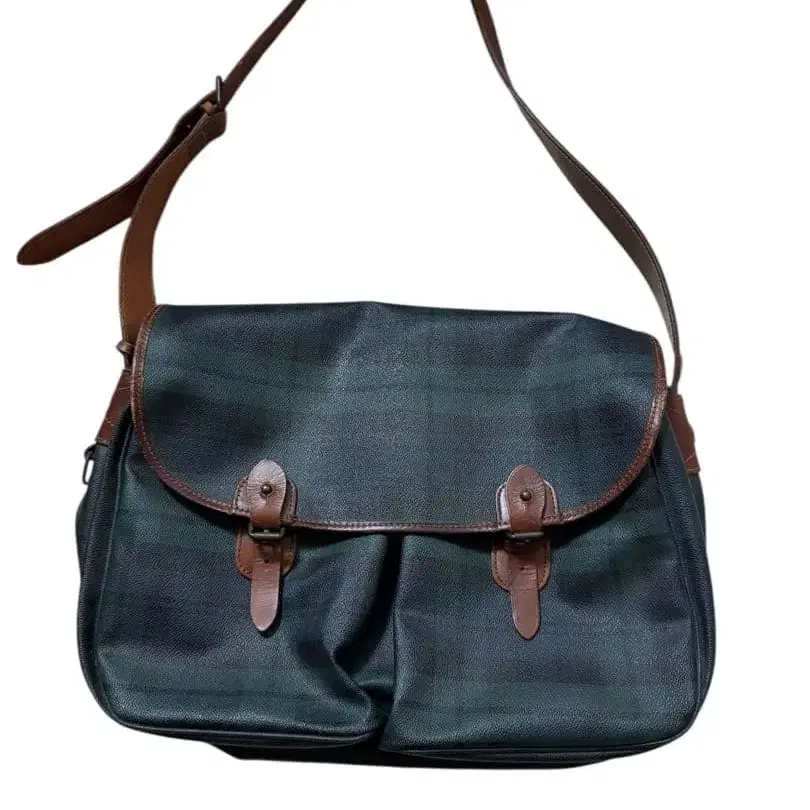 〈브랜드〉 폴로 랄프로렌 〈상품명〉 메신저 백 ( 숄더백 ) 〈사양〉 벨트식 플랩 개폐, 지퍼식 포켓 x 2, 뒷면: 스냅식 포켓 x 1 〈부속품〉 가죽 참, 브러쉬 포함 〈사이즈〉 세로 30cm 가로 45cm 바닥 12cm A4 사이즈 수납 가능 ※ 개인 측정으로 약간의 오차가 있을 수 있습니다. 〈소재〉 천연 가죽 ( 숄더 벨트 부분 ), PVC ( 체크 무늬 본체 부분 ) 〈색상〉 그린 x 네이비 체크 무늬 블랙워치 빈티지 상품입니다. 자택에서 보관했습니다. 중고품이라는 점을 이해해 주시기 바랍니다. 간편 포장하여 발송합니다.