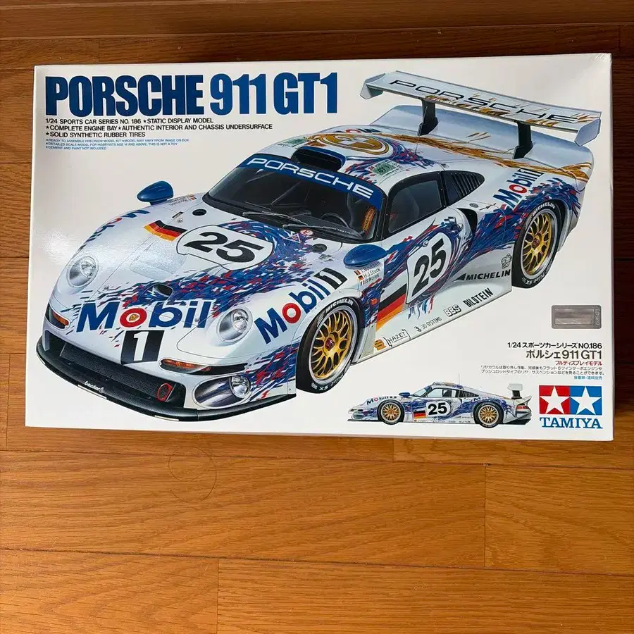 1/24 스케일 포르쉐 911 GT1 프라모델, Mobil 1 컬러 디자인. - 모델명: Porsche 911 GT1 - 브랜드: TAMIYA - 스케일: 1/24 - 디자인: Mobil 1 컬러 - 특징: 리어 윙 포함 - 패키지 내용: 프라모델 키트 방문해 주셔서 감사합니다.